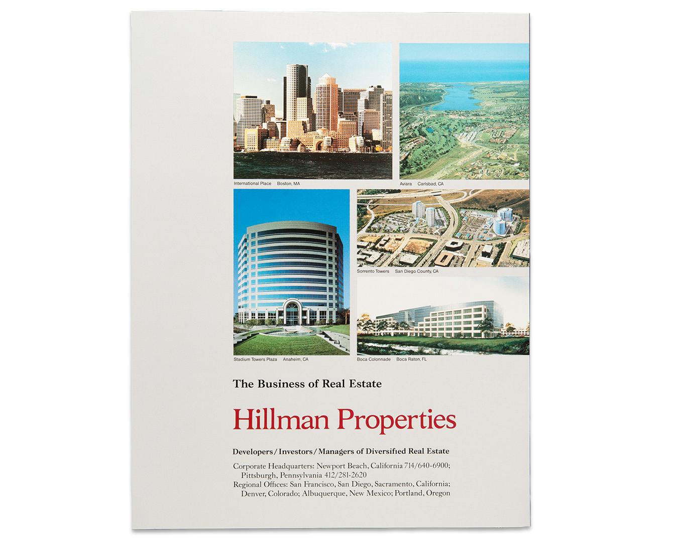 Focusing on real estate, new industries, and exploration, Hillman became the largest single venture capital investor and one of the largest commercial real estate developers in the U.S. The company was an early investor in alternative energy, telecommunications, and healthcare industries.